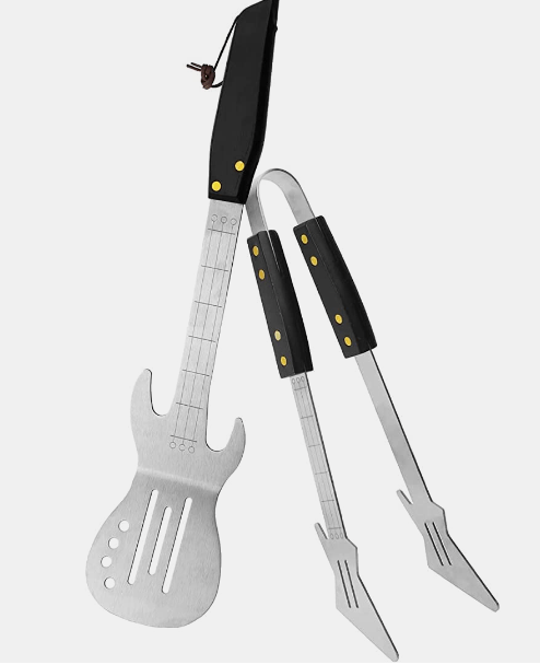 18. Rock Guitar Style Heavy Duty Stainless Steel 2-Piece Barbecue Tool Set with Spatula & Tongs